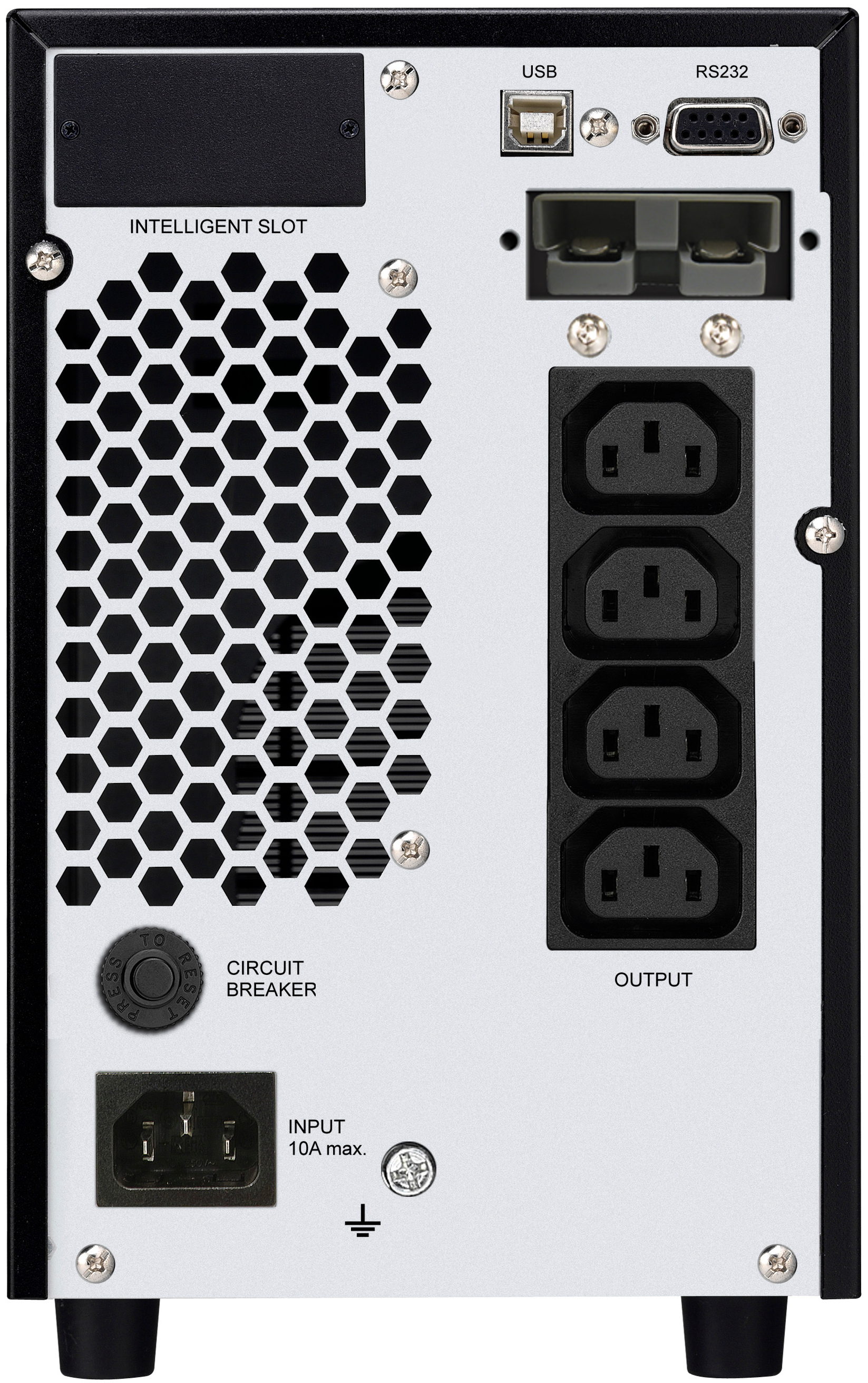 LCD IndicatorsUPS status, Load level, Battery level, Input/Output voltage, AC mode, battery mode, Bypass mode, fault conditions