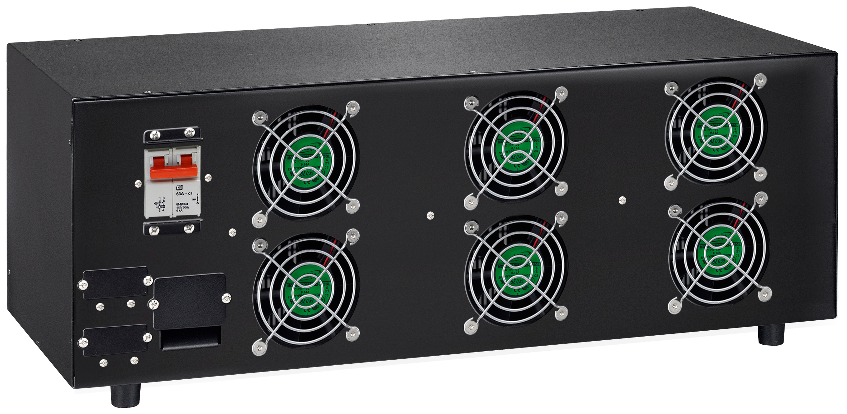 External charger in a stand-alone housing. Works parallel to the UPS. You can connect your battery pack via connector (240VDC). Charging current is 24A.